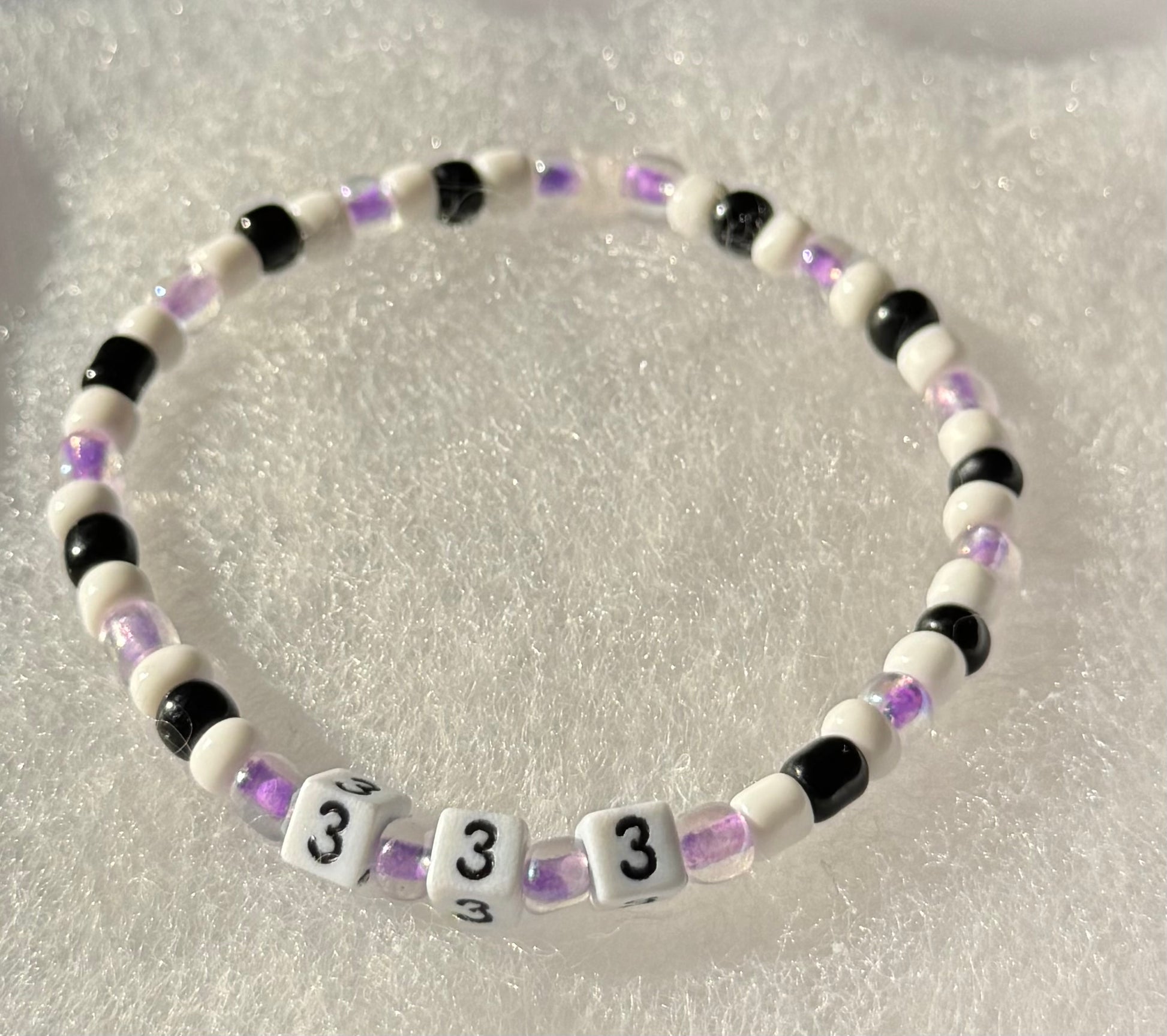 White, Black & Purple Bead Bracelet with Angel Number 333