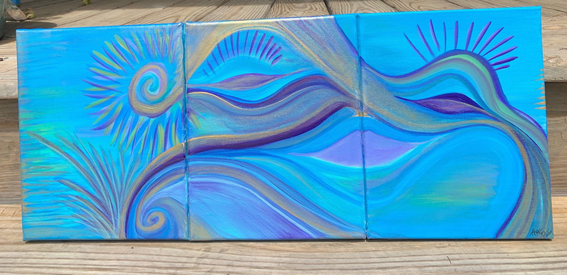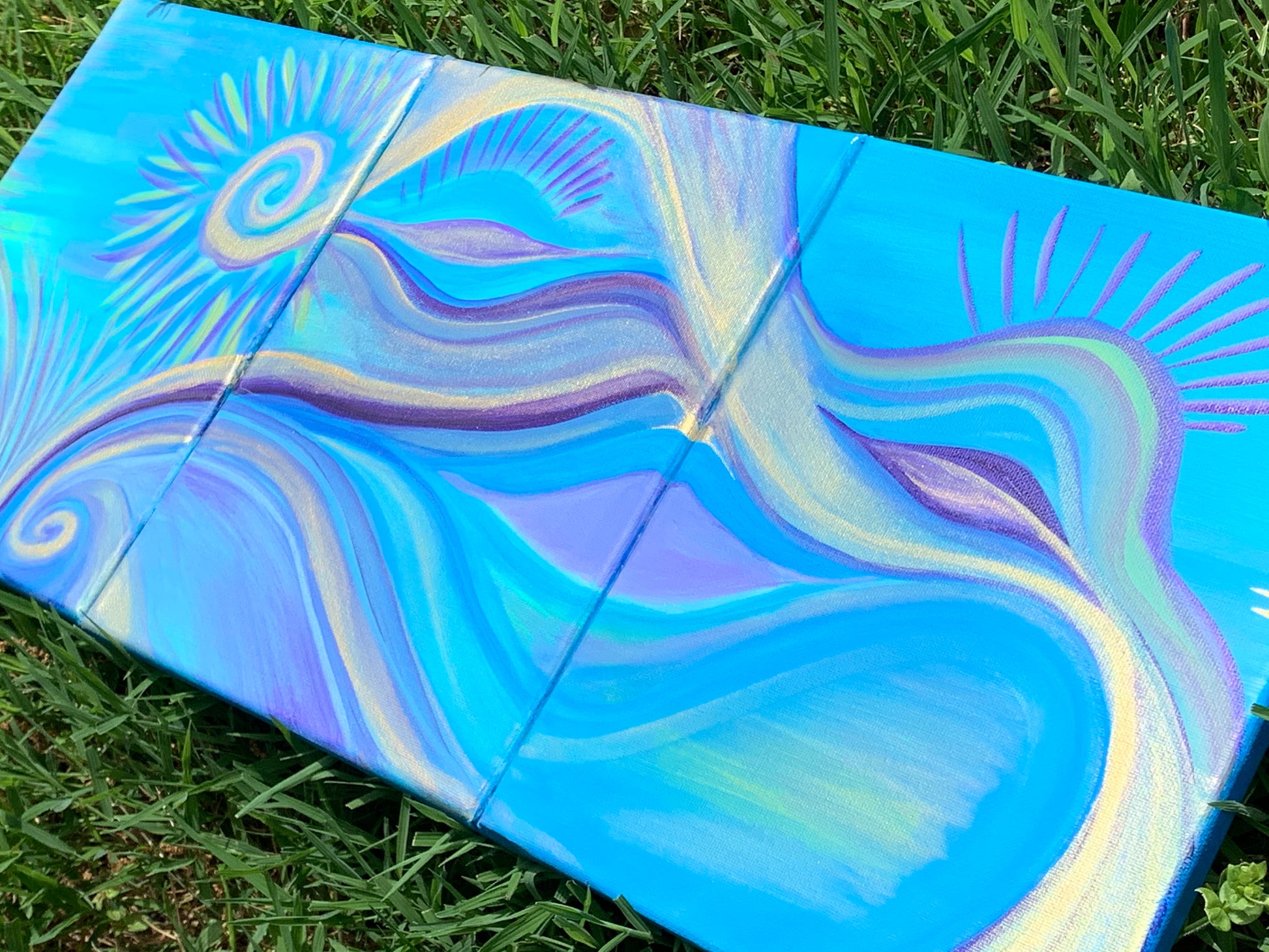 “When I created Frog Goddess, I remember being in an unmatched flow state. The fluidity between my brush, canvas and colors was unmatched to anything I had ever painted before. This piece represents the goddess we all have inside of us with a spin due to my love for nature and the beauty she expresses so naturally.”